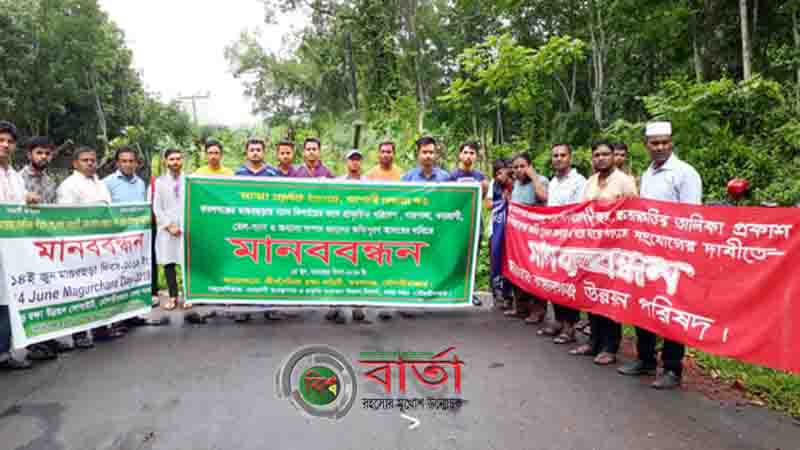 মাগুরছড়া গ্যাস কূপ বিস্ফোরণের ২২তম বার্ষিকীতে শুক্রবার (১৪ই জুন) বেলা সাড়ে ১১টায় কমলগঞ্জ উন্নয়ন পরিষদ, কমলগঞ্জ জীব বৈচিত্র্য রক্ষা কমিটি ও কমলগঞ্জ পাহাড় উন্নয়ন ও রক্ষা কমিটি যৌথভাবে মাগুরছড়া গ্যাস কূপ বিস্ফোরিত এলাকার পাশে কমলগঞ্জ-শ্রীমঙ্গল সড়কে ক্ষতিপূরণ দাবি করে মানববন্ধন কর্মসূচি পালন করে।