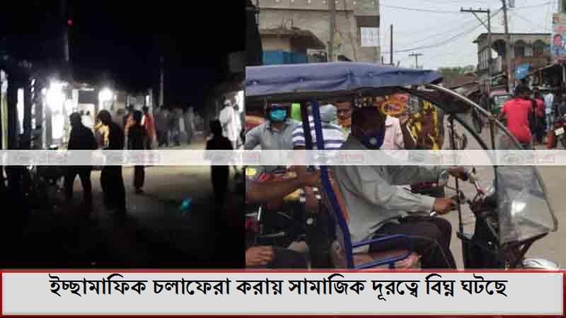 উপজেলার পৌর শহরেরও একই চিত্র। প্রশাসনের কঠোর নজরদারীর মধ্যেও সাধারণ মানুষ সরকারী নির্দেশনার প্রতি বৃদ্ধাঙ্গুলী দেখিয়ে সামাজিক সুরক্ষা বিঘ্নিত করছে।
