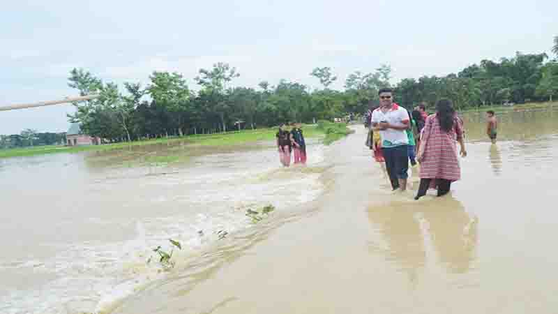 আদমপুর-কমলগঞ্জ সড়কের পশ্চিম দিকের ভাঙন দিয়ে ঢলের পানি প্রবেশ করে আদমপুর ইউনিয়নের বিস্তীর্ণ এলাকার ফসলি জমি প্লাাবিত হয়েছে।বসতবাড়িতে পানি ঢুকছে।