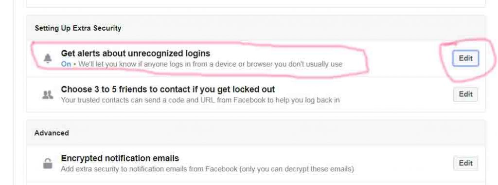 ফেসবুক অ্যাকাউন্টে আপনার মোবাইল নম্বর দিয়ে রাখুন। এরপর account settings এর Security and login অপশনে ক্লিক করুন। Setting Up Extra Security এর নিচে লিখা Get alerts about unrecognized logins ক্লিক করুন। Add another email or mobile number ক্লিক করে মোবাই নম্বার এড করে সেইভ করে দিন।